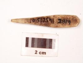 | Description / विवरण | A small point with pointed broken at one end, polished both sides, smooth surface. |