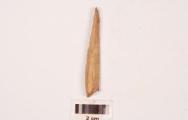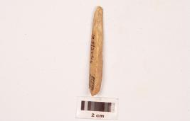 | Description / विवरण | Fragment of a bone point with slightly broken both ends, polished both sides, smooth on surface. |