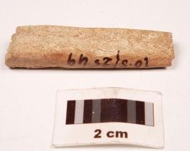 | Description / विवरण | Fragment of a bone point with rectangular in section, porous on surface, heated & polished both sides, slightly broken both ends, rough surface. |