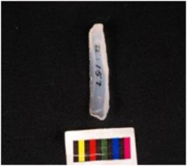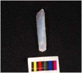 | Description / विवरण | Parallel sided blade with two ridge on dorsal surface, intact proximal end with positive bulb, use-wear marks along the cutting edge, broken distal end. |