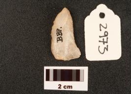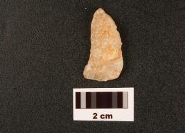| Description / विवरण | Flake made on quartz with use-wear marks along alon cutting edges, striking platform with bulb on ventral side and smooth surface. |
