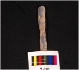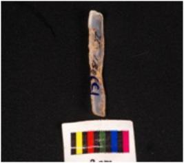 | Description / विवरण | Parallel sided blade with single ridge on dorsal surface, broken towards proximal end, intact distal end, use-wear marks along the cutting edge. |