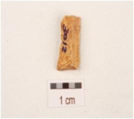 | Description / विवरण | A chert blade with mid ridge on dorsal side, diffused bulb on ventral side along with the prepared platform and use wear marks on edges. |