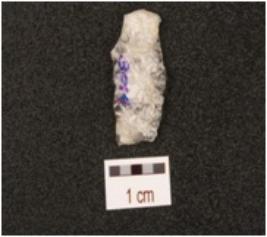 | Description / विवरण | A quartz blade with mid ridge on dorsal side and diffused bulb on ventral side and use wear marks on edges. |