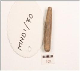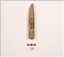 | Description / विवरण | Fragment of bone point, both ends partly broken, circular cross section, polished surface and charred condition. |