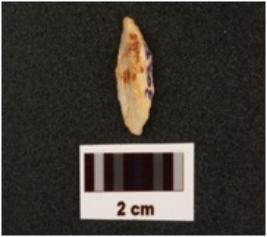 | Description / विवरण | A point made on chalcedony, distal end is pointed, ridge on dorsal side and smooth ventral, use wear marks on edges. |