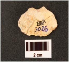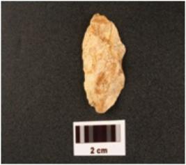 | Description / विवरण | A flake made on chert, prepared platform on and diffused bulb on ventral side. |