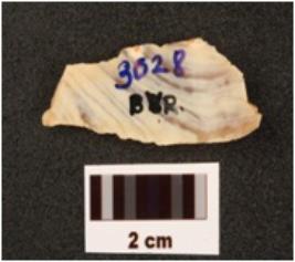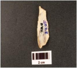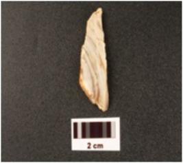 | Description / विवरण | A flake made on chalcedony, mid ridge on dorsal side and difffused bulb on ventral side and use wear marks on edges. |