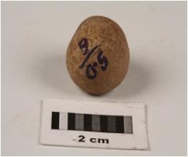 | Description / विवरण | Handmade sling ball, slightly broken surface and smooth surface. |