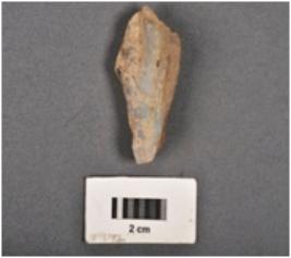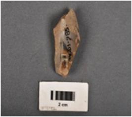 | Description / विवरण | Fragment of a chalcedony blade core with five bladescers, given heat treatment. |