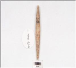 | Description / विवरण | A bone point, oval cross-section, pointed tips are broken and partly polished surface. |