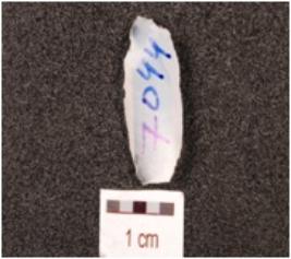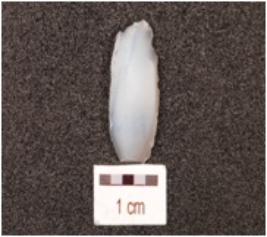 | Description / विवरण | A blade made of chalcedony, ridge on the dorsal side, use wear marks on the cutting edges and smooth surface. |
