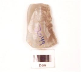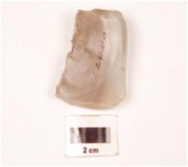 | Description / विवरण | A core made of chalcedony flake, blade scars on the dorsal side and smooth surface. |