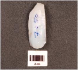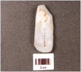 | Description / विवरण | A core made of chalcedony flake, flake scars on the surface, cortex on the surface and smooth surface. |