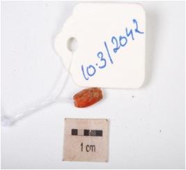 | Description / विवरण | Fragment of blade with single ridge on dorsal, triangular cross section, use wear marks on cutting and broken along proximal end. |