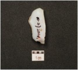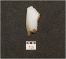 | Description / विवरण | A chalcedony blade with prominent single ridge on dorsal, triangular cross section, bulb on ventral, prepared platform and use wear marks on cutting edge. |
