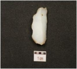 | Description / विवरण | A chalcedony core with prepared platform, one blade scar on surface and use wear marks on edge. |
