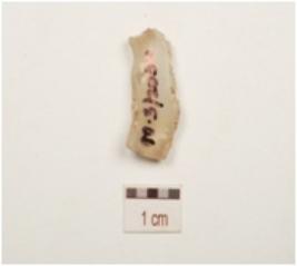 | Description / विवरण | A chalcedony backed blade, backed along one edge, ripple marks on ventral and striking platform. |