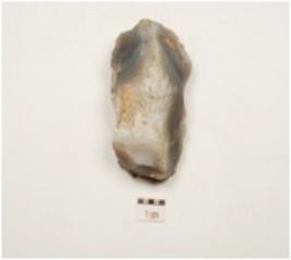 | Description / विवरण | A chalcedony core with cortex at one end and flake scars on surface. |