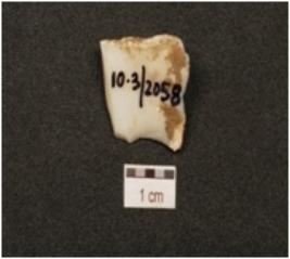 | Description / विवरण | A chert utilized flake with use wear marks on edge and triangular cross section. |