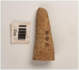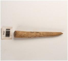 | Description / विवरण | A point made on animal horn. Surface is polished and sharp tip is missing base is circular with perforation. |