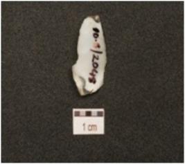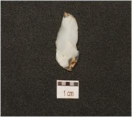 | Description / विवरण | A chalcedony blade with mid ridge on dorsal, triangular cross section, bulb on ventral striking platform and use wear marks on cutting edge. |