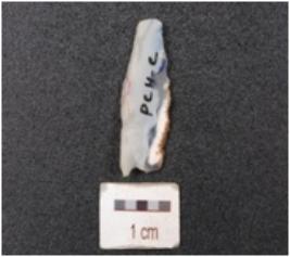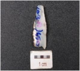 | Description / विवरण | Flake made on chalcedony, cortex partly intact and triangular cross-section. |