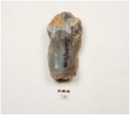 | Description / विवरण | A chalcedony core with cortex at one end and flake scars on surface. |
