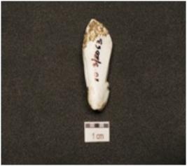 | Description / विवरण | A chert blunted blade with cortex on dorsal, striking platform, diffused bulb on ventral and triangular cross section. |