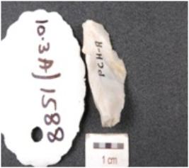 | Description / विवरण | A flake made on agate, flake scars on dorsal side, designing on both side and irregular shaped. |