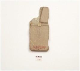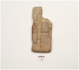 | Description / विवरण | Fragment of rectangular mould, broken from one edge, having channel design on both surface along incised two fish figurine on back. |