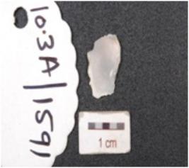 | Description / विवरण | A flake made on chalcedony, diffused bulb on ventral side and wavy cutting edges. |