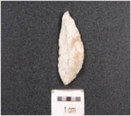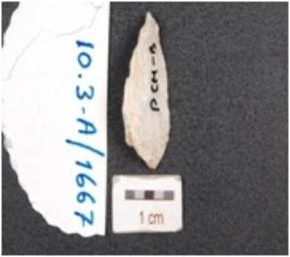 | Description / विवरण | A chert end struck utilized flake, triangular cross-section, diffused bulb on ventral side and use-marks along the cutting edge. |
