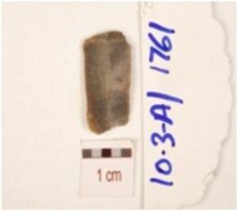 | Description / विवरण | A blade made on chert mid ridge on dorsal side, diffused bulb on ventral side and use marks on edges. |