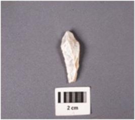 | Description / विवरण | Chert blade with one mid ridge and flake scars on dorsal side, pointed along at distal end, defused bulb with irragluire on ventral side and use wear marks on cutting edges. |