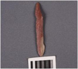 | Description / विवरण | A blade with single ridge on dorsal surface, diffused bulb on ventral surface, perpared platform, use-wear marks a long cutting edges. |