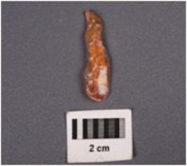 | Description / विवरण | A parallel sided blade with a ridge dorsal surface, prominent bulb on ventral surface, prepared platform, use-wear marks along cutting edges, raw material given heat treatment. |