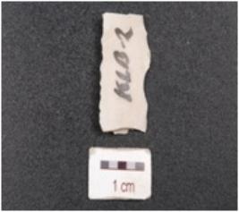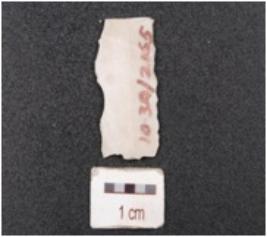 | Description / विवरण | Blade made on chert, trapezoid in section, double ridge on dorsal side and irregular marks on edges. |