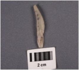 | Description / विवरण | Fragment of a parallel sided blade with ridge on dorsal surface, diffused bulb on ventral surface, prepared platform broken along distal end, use-wear marks along cutting edges. |