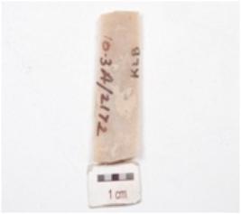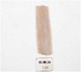 | Description / विवरण | Blade made on chert, trapezoid in section, double ridge on dorsal side and use marks on edges. |
