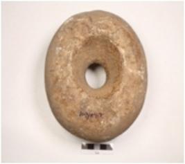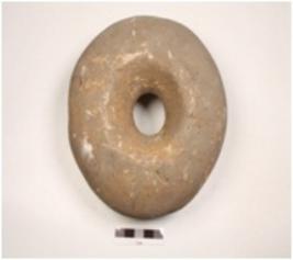 | Description / विवरण | A stone mace head with perforation, to facilitate handle and rough surface. |