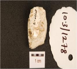 | Description / विवरण | A chert core with four blade scars on dorsal side. |