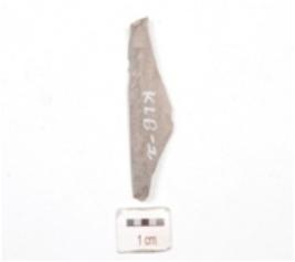 | Description / विवरण | Blade made on chert, trapezoid in section, double ridge on dorsal side, diffused bulb on ventral side and use marks on edges. |