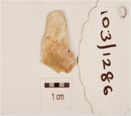 | Description / विवरण | A chert utilized flake with flake scars on dorsal and use-wear marks on edge. |