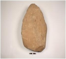| Description / विवरण | Quartzite chipping tool made on pebble and flake scars on working end. |