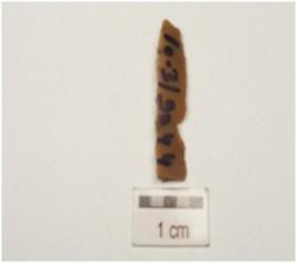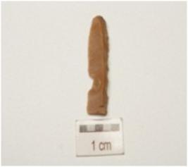 | Description / विवरण | A blade made of chert with a mid ridge on dorsal side, use-wear marks along the cutting edges, triangular cross section and diffused bulb. |