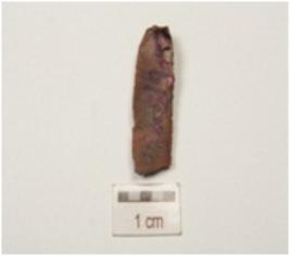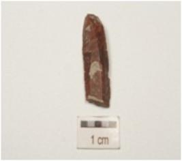 | Description / विवरण | A blade made of chert, double ridge on dorsal surface, trapezoidal cross-section and bulb is prominent. |