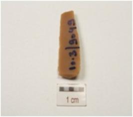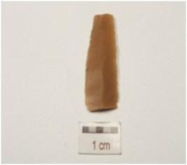 | Description / विवरण | A blade made of chert, triangular cross-section and use-wear marks along cutting edges. |