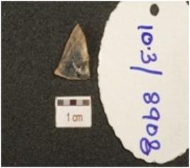 | Description / विवरण | A burin made on crystal, triangular shaped and transparent. |