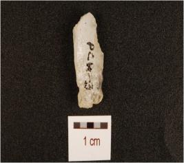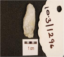 | Description / विवरण | A quartz utilized flake with flake scars on dorsal and use-wear marks on edge. |